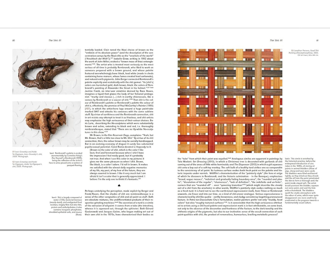 The Absolute Mixture: Art Positive is the first book-length study devoted to the scatological in art and breaks substantial new ground. It analyses excremental art as an extension of the avant-garde project of dismantling the separation between art and life. It is introduced by a survey from medieval times; the main focus, however, is on twentieth-century and contemporary art. The Absolute Mixture is organised chronologically but also by themes; numerous individual artists and their works are also considered at length. The narrative is shaped by multiple interweaving ‘excremental discourses’, including (but not limited to) disgust theory (beginning in eighteenth-century Germany); Freudian-Lacanian-Kristevan philosophy-cum-psychoanalysis; gestures of rebellion from Diogenes to Sloterdijk’s kynicism; and contemporary notions of ecologically-sound production and recycling. The text is accompanied by 200 illustrations. Matthew Bown is a London-, Moscow- and Berlin-based art-dealer and writer. In 2015, he gave the keynote speech at the annual conference of the International Association of Art Historians (AICA). He has published extensively on Russian art, including books for Yale University Press and Phaidon Press. He writes art criticism for the Times Literary Supplement. “She [Rrose Sélavy] is embarrassed to tell him this, but his is very like some kind of dog’s that litters the pavements.” (Jeanine Chasseguet-Smirgel, Creativity and Perversion) Excerpts: Gilbert and George described their ideal colour as “George Michael Arse Brown”, which, whatever the precise shade, will have been produced substantially by the pigment stercobilin, which was first identified in 1932. (...) Clair noted the choice of brown as the “emblem of its absolute power” (and the description of the concentration camps by the elite as the “arsehole of the world” (“Arschloch der Welt”)). (...) John Berger connected Rembrandt’s palette explicitly and ecstatically