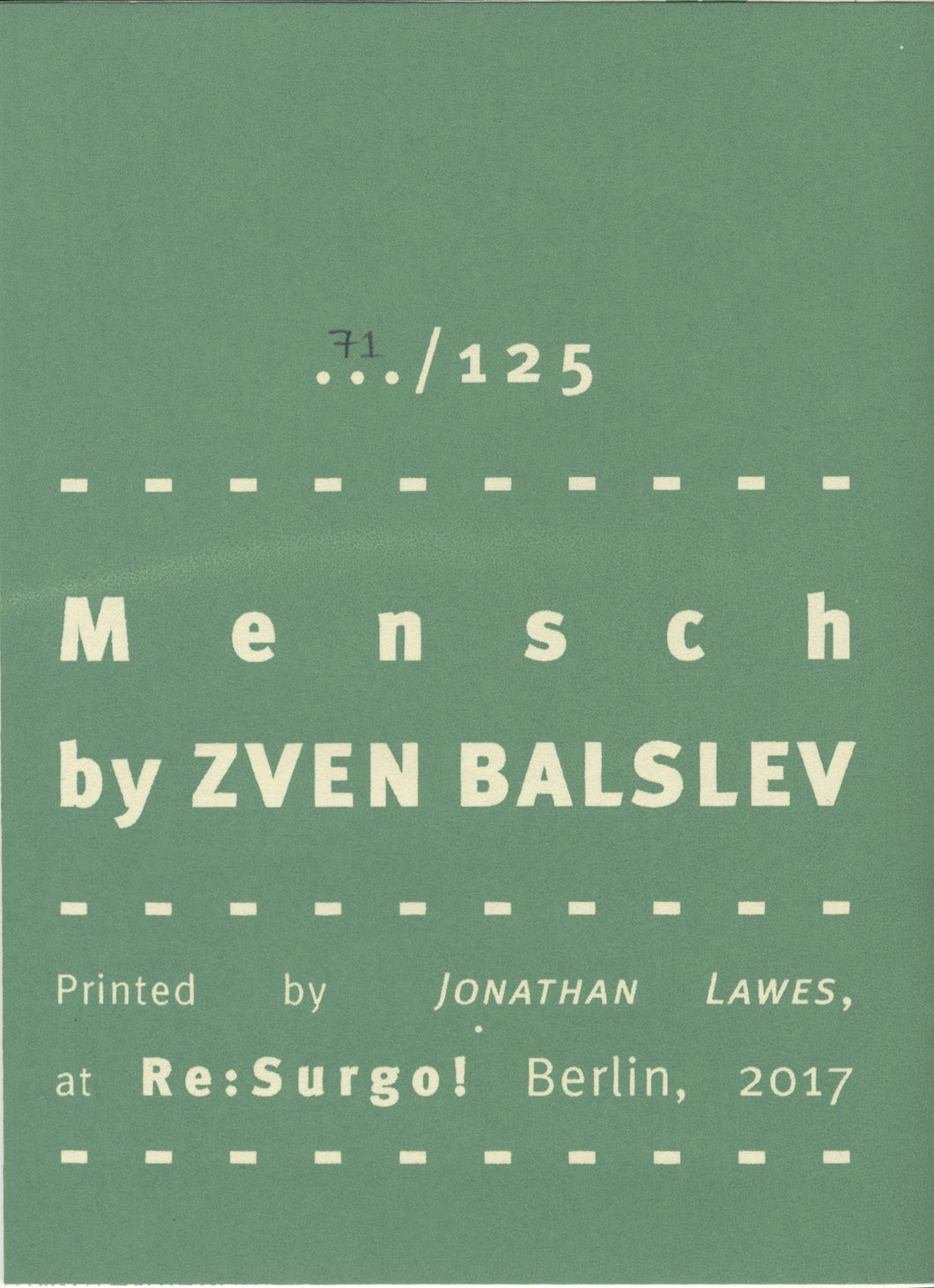 16 pages, 15 x 11 cm , edition of 125 ex, numbered.