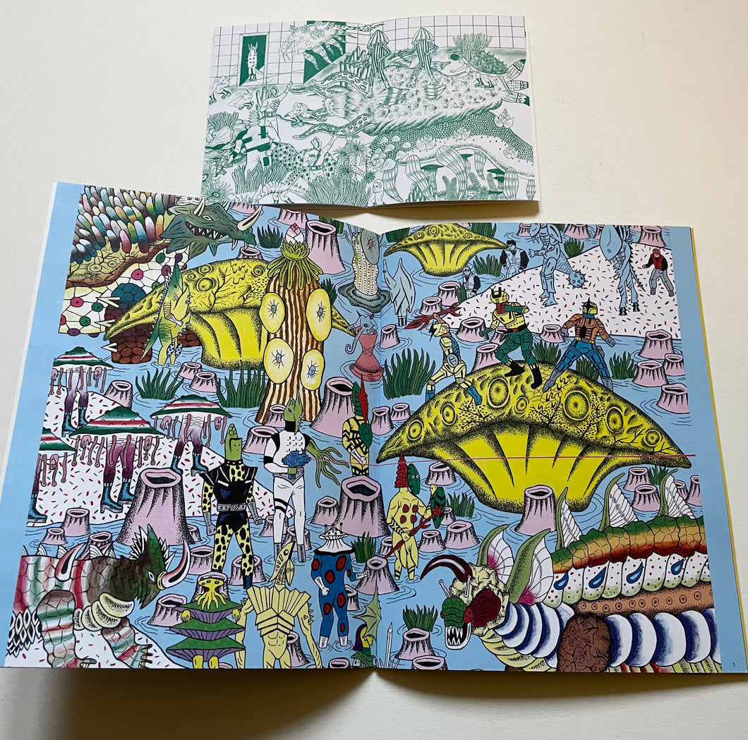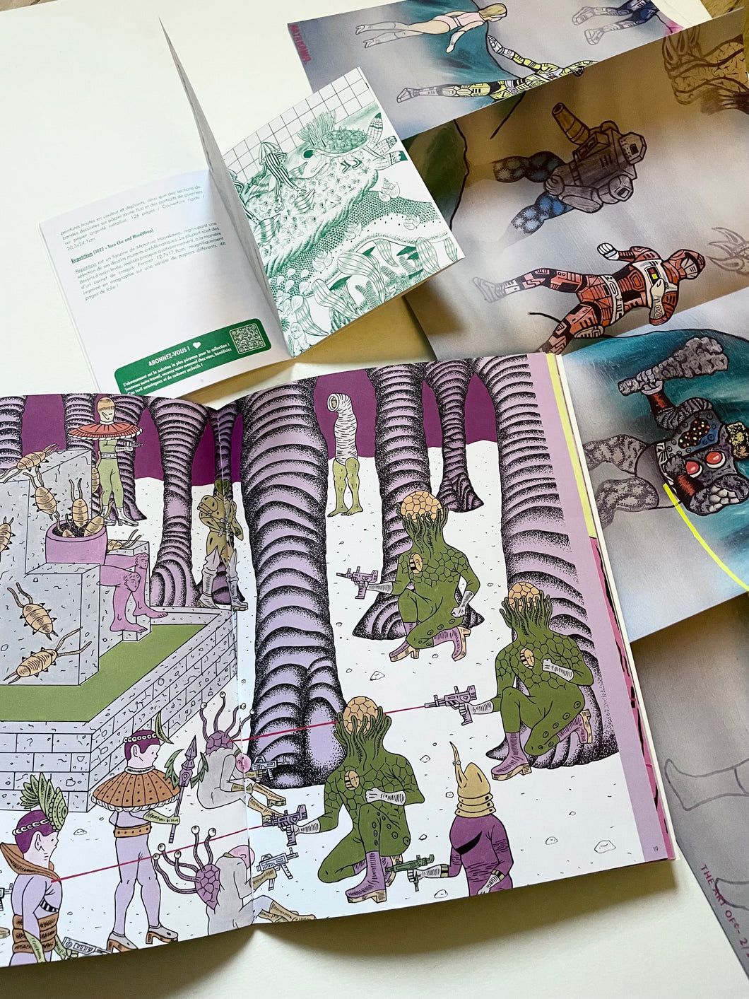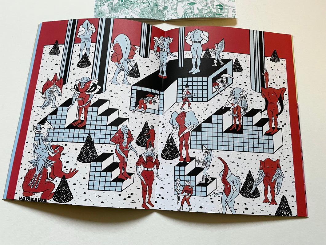 Motohiro Hayakawa has developed a rich and vibrant style, filled with bold lines and bright colors, where giant robots, mutant monsters, futuristic soldiers, masked heroes, and alien factions all collide. His universe pays clear tribute to vintage Japanese toys, soft vinyl kaiju figures, and iconic tokusatsu series such as Super Sentai or Kamen Rider — better known in the West as Power Rangers. A formal freedom inspired by the heta-uma movement.